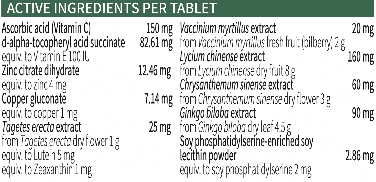 Biogency B&E Tablets contain extract from ginkgo biloba leaf to support cognitive function and memory. Biogency B&E tablets provide antioxidants from the extract of berries to maintain eye health as well as general health and well-being.