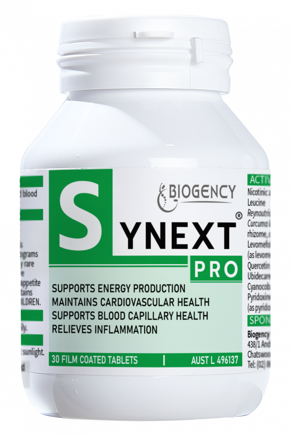 The Synext Pro is formulated to support energy production, reduce inflammation, support cardiovascular function, and maintain healthy blood capillaries.
